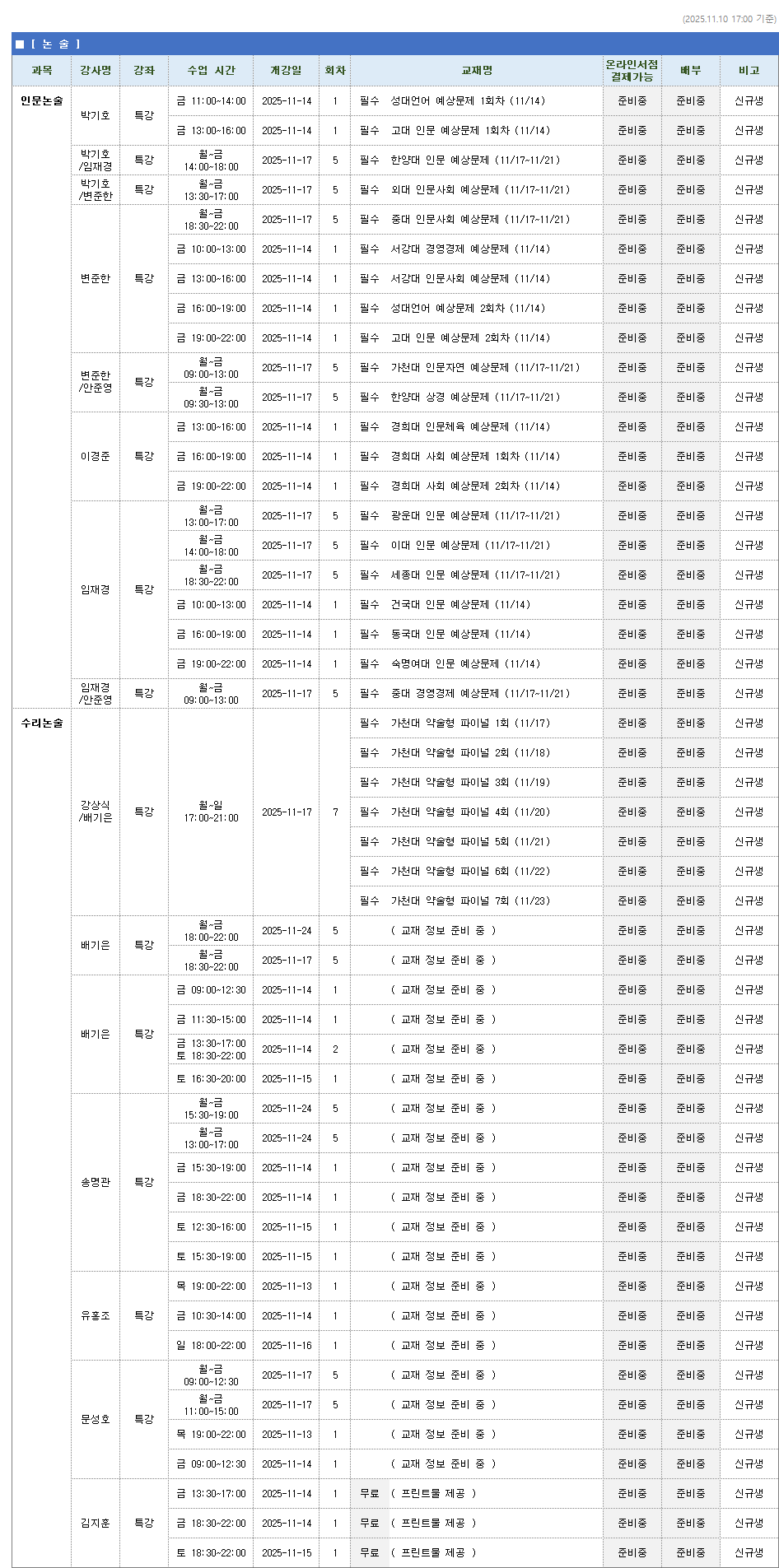 [11¿ù ´ëÇк° ³í¼ú ÆÄÀ̳ΠƯ°] ±³Àç °áÁ¦ ¹× ¼ö·É °¡´É ¿©ºÎ ¾È³»ÀÔ´Ï´Ù.