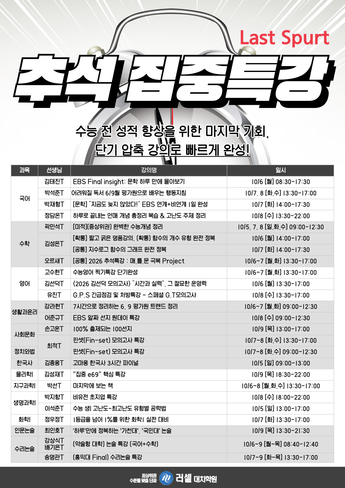 · °ú¸ñº°·°úÁ¤º° ÁýÁß ÇнÀ ´Ü°ú£ü³»½Å°ü
