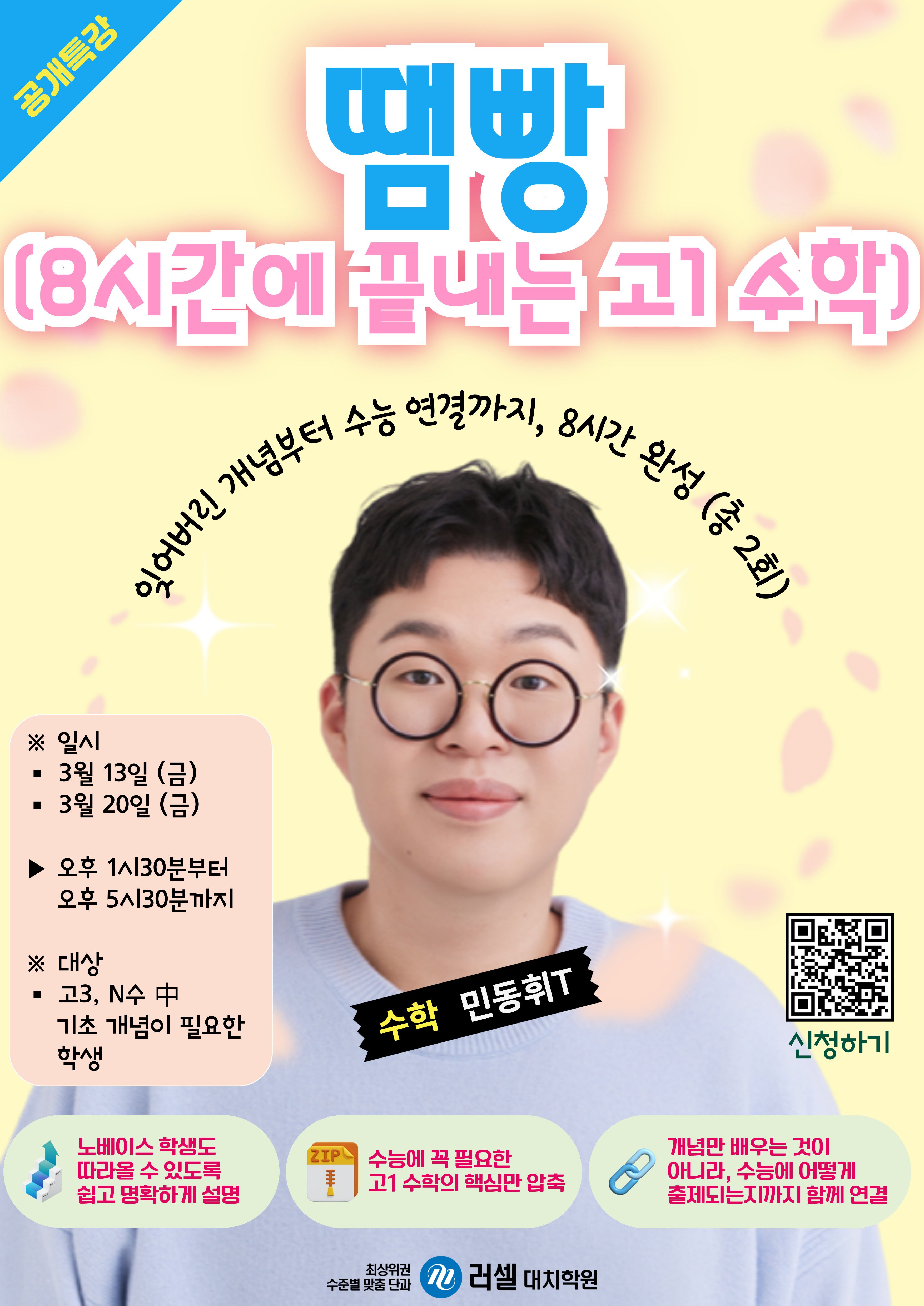 | [°í3/N¼ö] ¼öÇÐ ¹Îµ¿ÈÖT <¶«»§ - 8½Ã°£¿¡ ³¡³»´Â °í1 ¼öÇÐ> (3/13, 20) | |||
